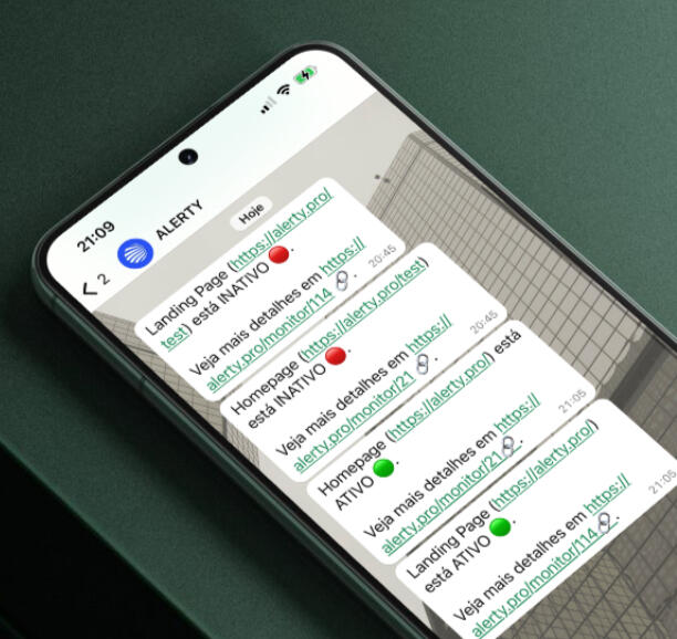 Receba alertas instantâneos e mantenha seu site sempre no ar.
