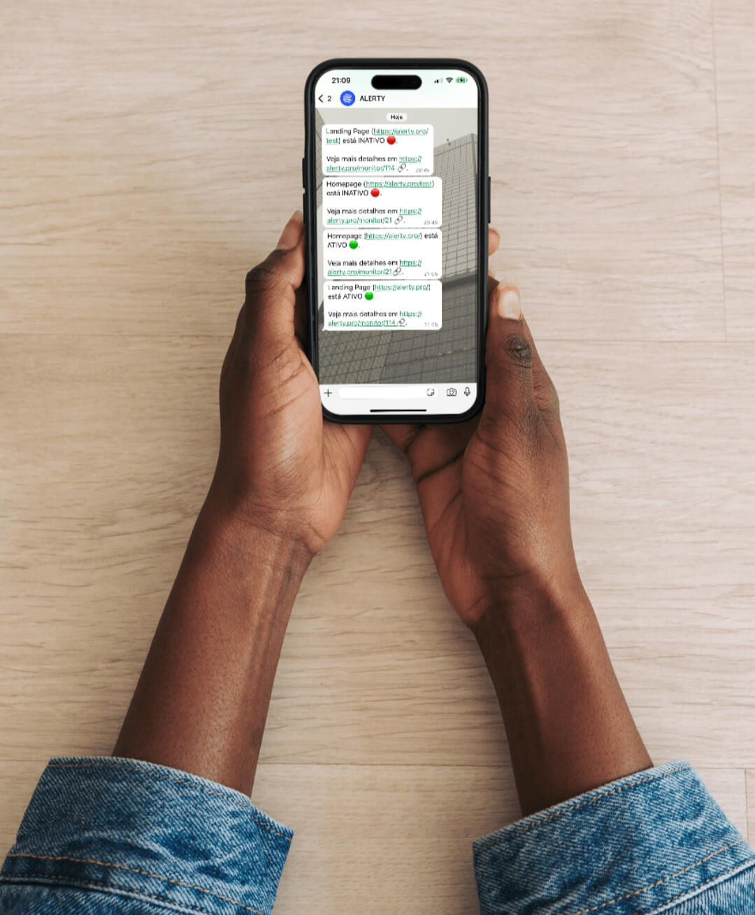 Se o seu site sai do ar, você perde vendas, aumenta seu custo de aquisição e frustra clientes. O Alerty protege sua operação com alertas instantâneos, para que você esteja sempre um passo à frente.
