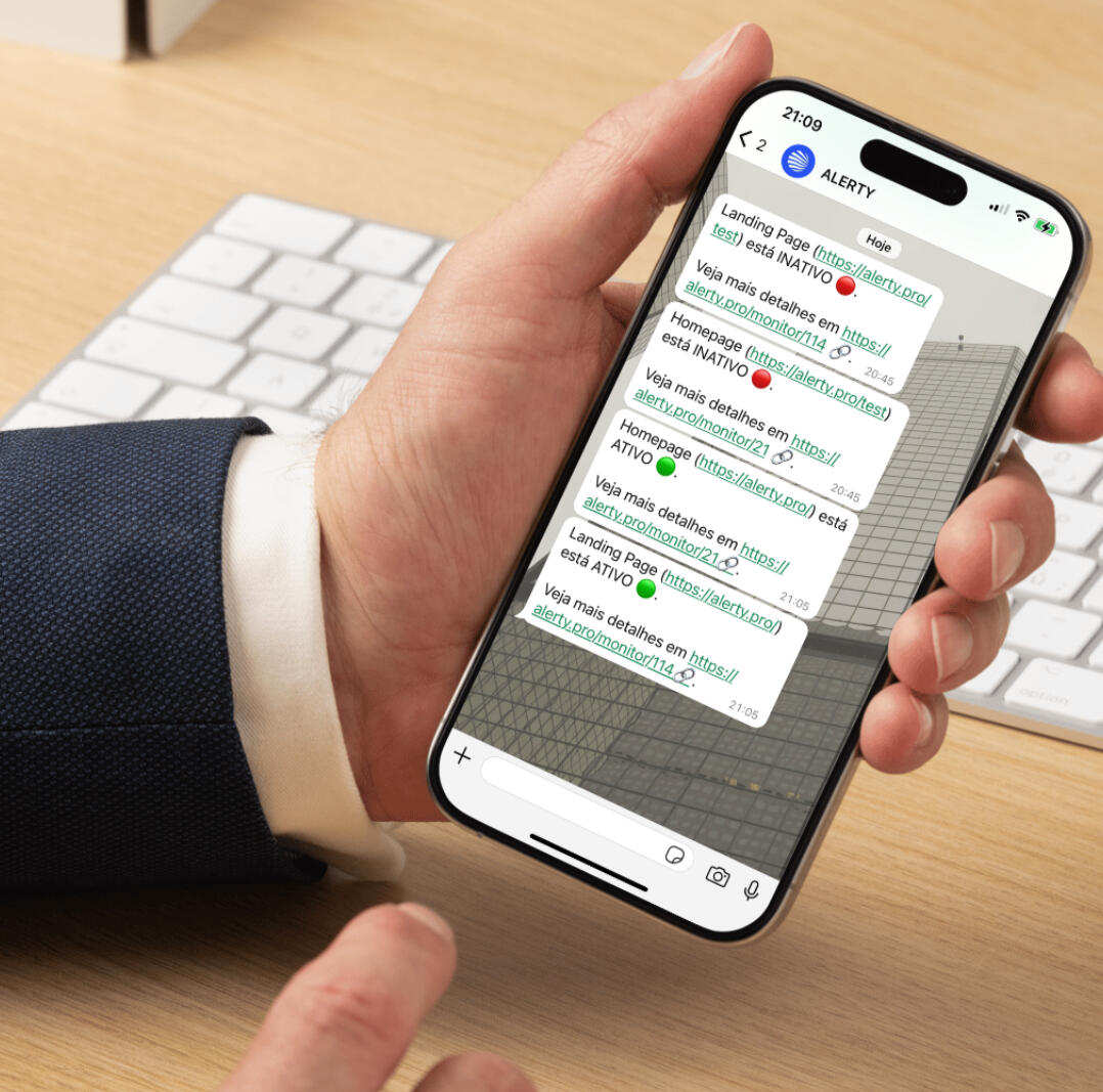 Receba alertas instantâneos e mantenha seu site sempre no ar.